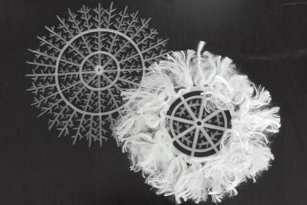 ? ? 彈性填料選用耐腐蝕、耐高溫、耐老化的聚烯氫類和聚酰胺配以親水、吸附、抗熱癢等助劑的混合共聚物為材料,采用特殊的拉絲,絲條制毛工藝,將絲條穿插固著在耐腐、高強(qiáng)度的中心繩上。彈性填料規(guī)格有Φ150mm、Φ160mm、Φ180mm、Φ200mm四種規(guī)格。